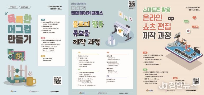 정안뉴스 황도연 기자 | (재)충남창조경제혁신센터는 2025년 10월 충남창업마루나비 나비랩에서 진행되는 3개 교육 과정에 대한 교육생 모집을 10월 1일부터 온라인으로 시작한다고 밝혔다.