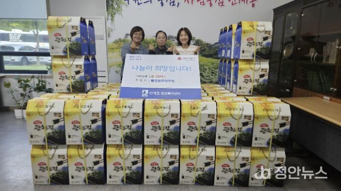 정안뉴스 안정주 기자 | 통영돌문어보쌈에서 다가오는 추석을 맞아 지난 10월 2일, 인계동 행정복지센터에 김 100박스를 전달했다.