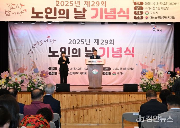 정안뉴스 안정주 기자 | 구리시는 노인의 날을 맞아 10월 2일 오전 10시 구리시청 1층 대강당에서 제29회 노인의 날 기념식을 열고 지역 어르신들과 뜻깊은 시간을 가졌다.
