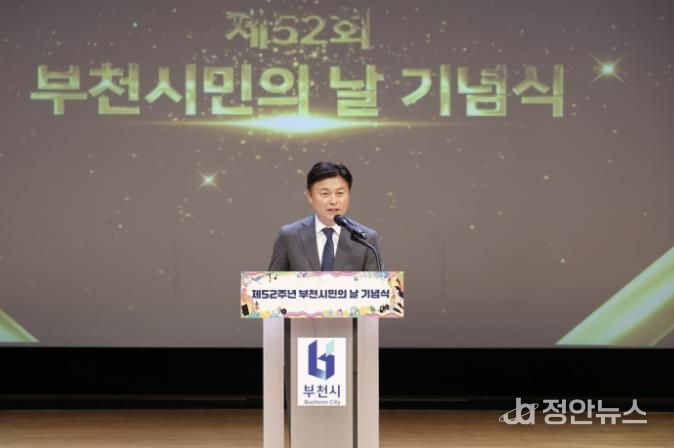 조용익 부천시장은 기념사를 통해 “부천은 시민의 땀과 열정, 헌신으로 공업도시에서 문화도시를 거쳐, 자족 기능을 갖춘 첨단과학 교육도시로 도약을 준비하고 있다”며 “앞으로도 ‘부천 3·4·5 프로젝트’를 성공적으로 추진해 경제도약과 도시공간 재구성, 균형발전을 이루고, 시정에 시민의 뜻을 담기 위해 시민의 삶에 더 깊이 다가가겠다”고 말했다.