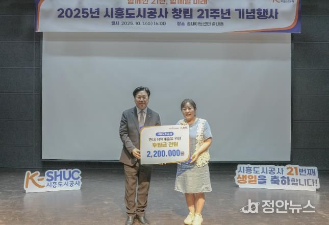 정안뉴스 안정주 기자 | 시흥도시공사는 지역사회의 어려운 이웃을 돕기 위해 마련한 성금 220만 원을 시흥시1%복지재단에 기탁했다고 밝혔다.