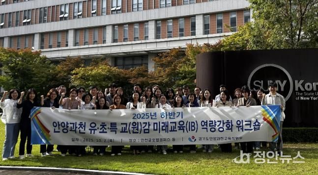 정안뉴스 안정주 기자 | 경기도안양과천교육지원청은 10월 2일, 송도에 위치한 인천글로벌캠퍼스 일대에서 안양과천 관내 유치원, 초등학교, 특수학교 교(원)감을 대상으로 ‘2025 하반기 미래교육(IB교육) 역량강화 워크숍’을 운영했다.