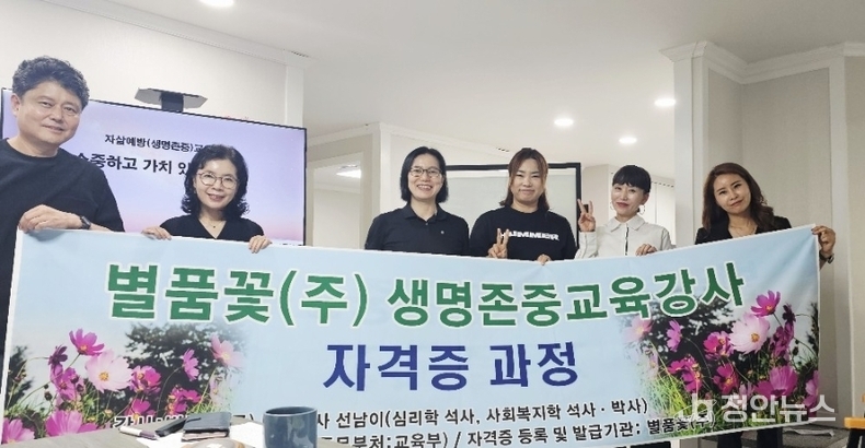 별품꽃(주)(대표이사 선남이)이 주관한 ‘대구 1기 생명존중(자살예방)교육강사 자격증 과정’이 최근 대구에서 진행됐다. 별품꽃(주) 생명존중교육강사 자격증 과정은 등록민간자격증(주무부처:교육부)을 취득하는 과정으로 이번 대구 1기 과정에서 다섯 명이 자격증을 취득하게 되었다.