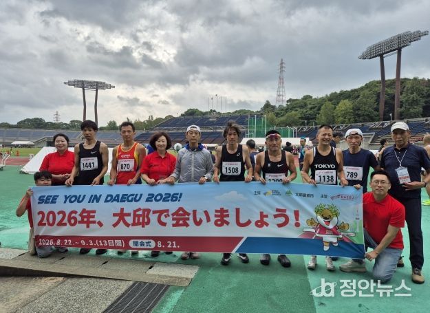 정안뉴스 안정주 기자 | 2026 대구세계마스터즈육상경기대회가 320여 일 앞으로 다가온 가운데, 조직위원회(이하 ‘조직위’)가 ‘2025 전일본마스터즈육상경기대회’에 참가하며 해외 선수단 유치를 위한 행보를 이어가고 있다.