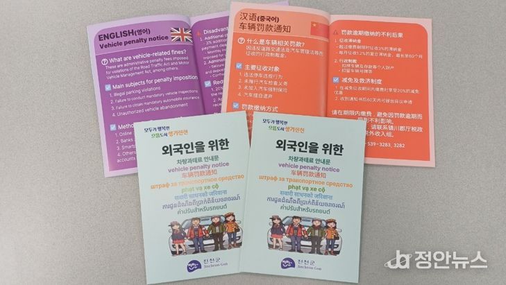 정안뉴스 황은경 기자 | 충북 진천군은 외국인의 차량 관련 과태료가 지속적으로 증가함에 따라 외국어 안내문을 자체 제작해 배포한다고 9일 밝혔다.