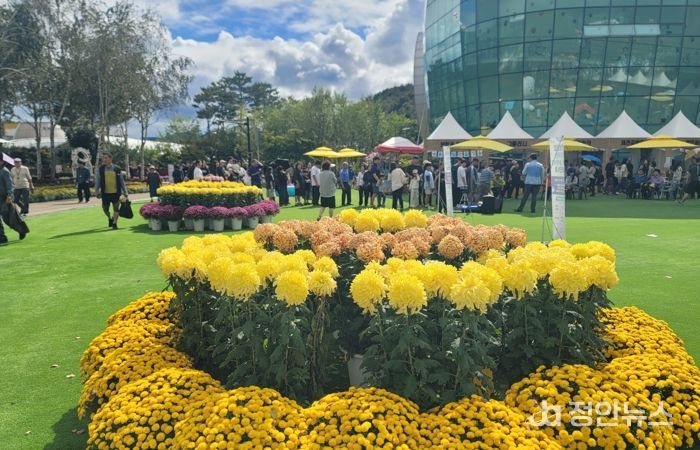 형형색색의 꽃밭 사이로 가족 단위 방문객과 연인들의 포토존 인증이 이어지며, 축제 현장 분위기가 한층 더 활기를 띠고 있다.