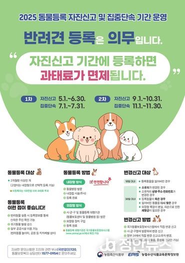 10월31까지 ‘동물등록 자진신고 기간’, 기간 내 동물등록·변경 신고 시 과태료 면제