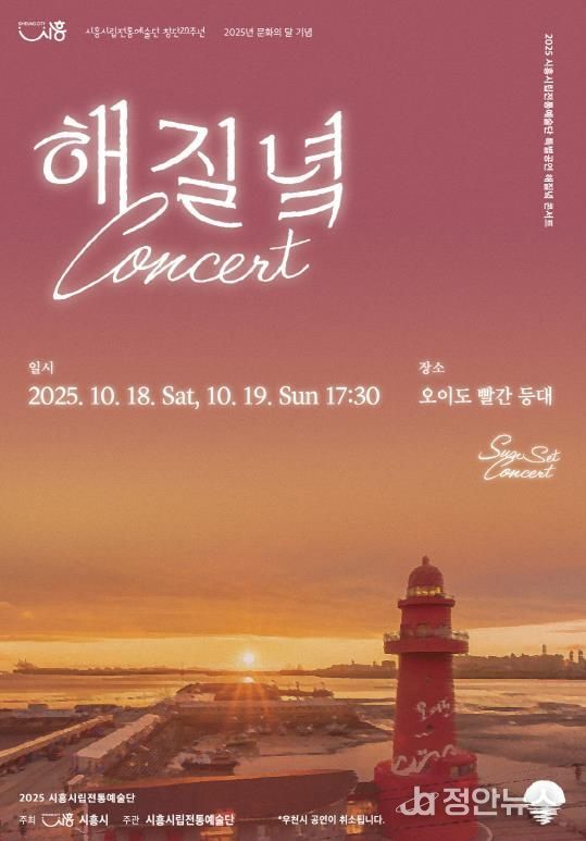 정안뉴스 안정주 기자 | 시흥시는 10월 18일부터 19일까지 이틀간 ‘오이도 빨강등대’에서 시립전통예술단의 ‘해질녘 콘서트’를 선보인다.
