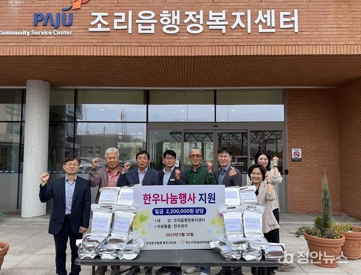 정안뉴스 안정주 기자 | 파주시 조리읍은 지난 9월 30일 전국한우협회 파주시지부로부터 추석 명절을 맞아 220만 원 상당의 한우 양지 43kg을 기탁 받았다고 전했다.