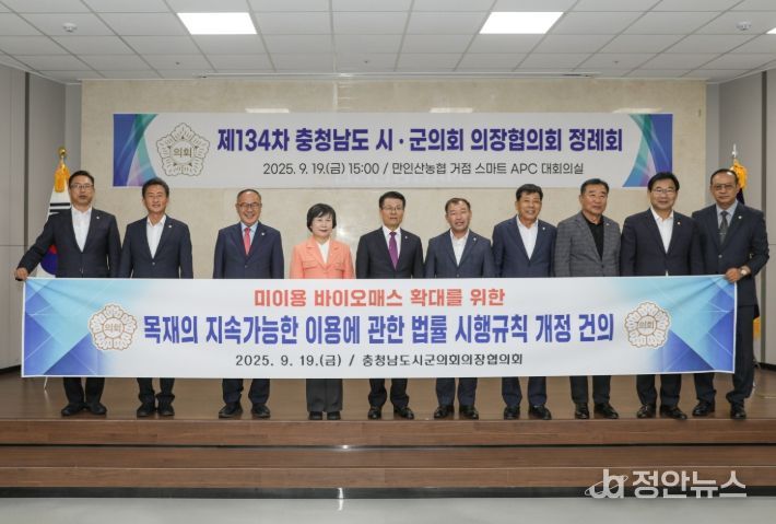정안뉴스 황도연 기자 | 예산군의회는 지난 9월 열린 제134차 충남 시·군의회의장협의회 정례회에서 장순관 의장이 제안하여 채택한 ‘미이용 산림바이오매스의 효율적 활용을 위한 법규 개정 건의안’을 농림축산식품부 등 관계 부처와 유관기관에 송부했다고 밝혔다.