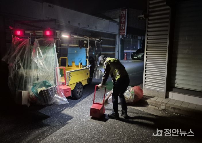정안뉴스 황도연 기자 | 금산군은 새벽 시간대 청소를 하는 환경미화원의 쓰레기 수거 작업 시 안전사고 예방을 위해 부착용 조명을 지급했다고 밝혔다.