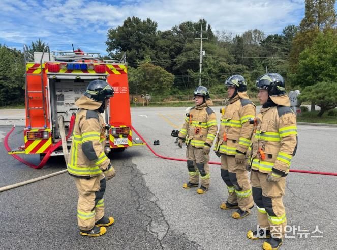 정안뉴스 황도연 기자 | 홍성소방서는 오는 10월 20일 실시되는 화재대응능력 2급 실기시험을 앞두고, 직원들이 실전과 같은 훈련 환경 속에서 구슬땀을 흘리며 막바지 연습에 매진하고 있다고 10일 밝혔다.