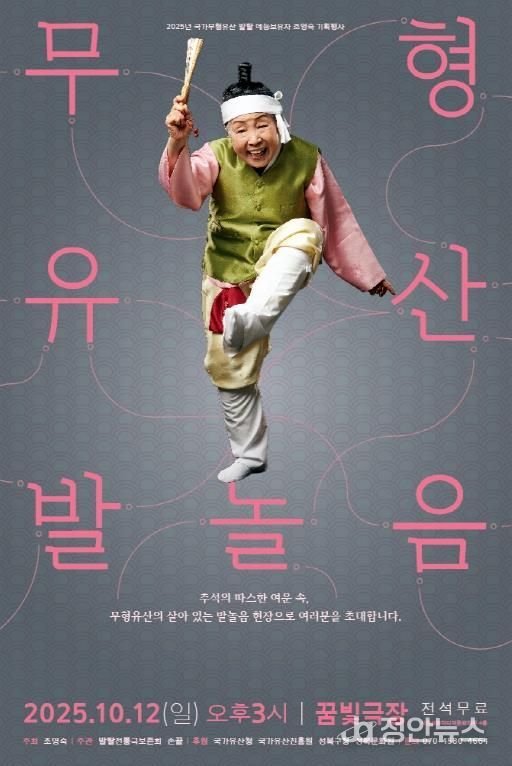 10월 12일 오후 3시 성북구 꿈빛극장(성북구 길음로7길 20 서울성북미디어문화마루 4층)에서 펼쳐지는 국가무형유산 발탈 예능보유자 조영숙 명인의 '무형유산 발놀음'이다. 성북구청 외에도 국가유산청과 국가유산진흥원, 성북문화원이 후원했다.