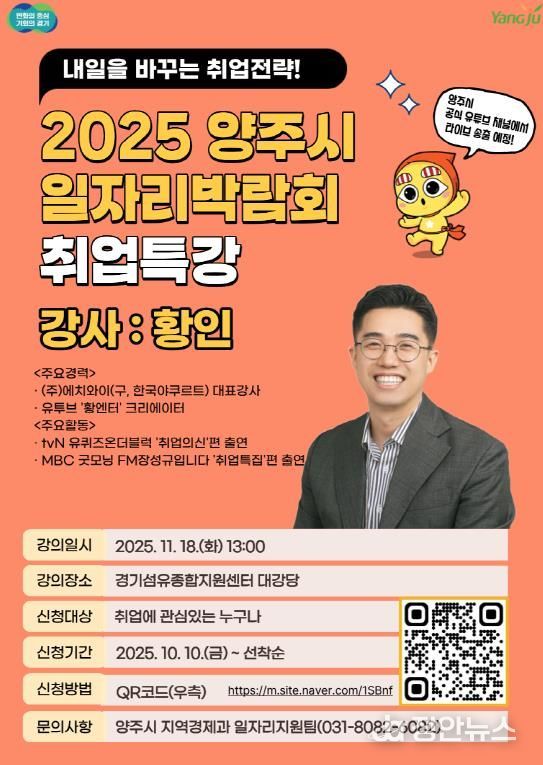 정안뉴스 안정주 기자 | 양주시가 오는 11월 18일 오후 1시, 경기섬유종합지원센터 대강당(지하 1층)에서 ‘2025 양주시 일자리박람회 취업특강’을 개최한다.