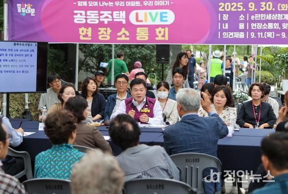 정안뉴스 안정주 기자 | 서울 동대문구는 지난 30일 e편한세상 청계센트럴포레 아파트에서 ‘2025 공동주택 LIVE 현장소통회’를 개최했다. 지난 6월 래미안미드카운티에서 열린 첫 소통회에 이어 두 번째로 마련된 이번 행사는 구청장이 직접 현장을 찾아 입주민과 소통하며 공동주택 현안을 논의하는 자리로 진행됐다.
