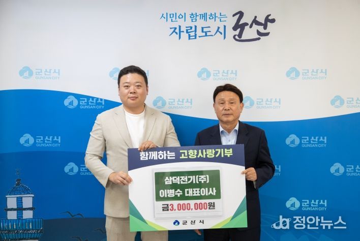 정안뉴스 안정주 기자 | 군산시는 삼덕전기(주) 이병수 대표이사가 고향사랑기부금 300만 원을 기탁했다고 밝혔다.