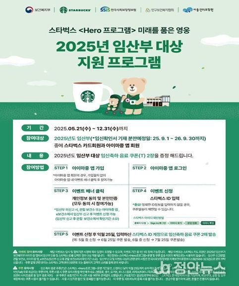 또한 지난 5월 보건복지부와 스타벅스코리아가 체결한 “임산부 배려 문화확산 업무협약”의 일환으로 기념행사에 참석한 임산부 및 가족에게 맞춤 제작된 텀블러와 푸드가 제공되어 따뜻한 환대가 이어졌다. 아울러, 온라인에서는 임신‧출산 맞춤형 정보 제공 애플리케이션인‘아이마중()’이용 임산부를 대상으로 음료 쿠폰(카페인 없는 음료 포함) 제공이벤트가 12월까지 진행되고 있다.