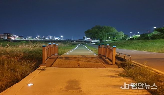 정안뉴스 황은경 기자 | 청주시는 시민들이 밤에도 무심천을 안전하게 이용할 수 있도록 무심천 우안(오른편) 산책로에 도로표지병을 설치한다고 12일 밝혔다.