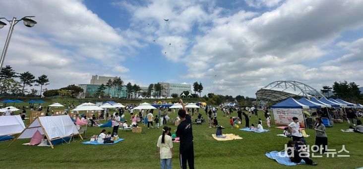 특히 이번 회차에서는 청주시립도서관과 협업한 ‘야외도서관, 어디든 책뜰’이 운영돼 주목을 받았다. 푸른 잔디 위에 마련된 미니 텐트와 빈백에서 가족이 함께 책을 읽으며 정서적 여유와 독서의 즐거움을 나누는 특별한 시간이 제공됐다.