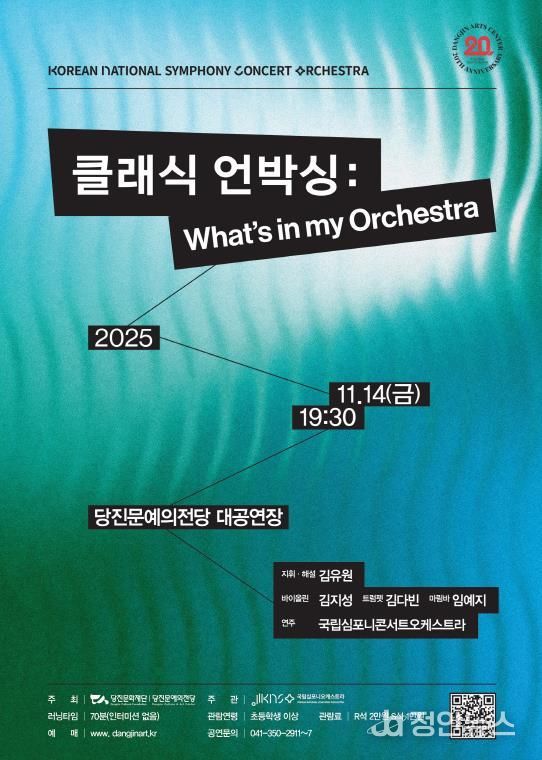 정안뉴스 황도연 기자 | (재)당진문화재단·당진문예의전당은 오는 11월 14일 금요일 오후 7시 30분, 당진문예의전당 대공연장에서 국립심포니콘서트오케스트라 초청 공연‘클래식 언박싱 : What’s in my Orchestra’를 선보인다.
