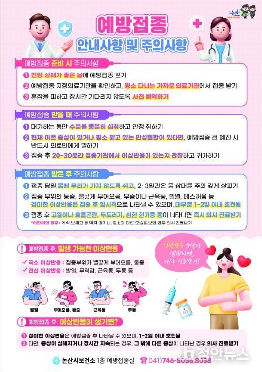논산시 관계자는 “예방접종은 감염병에서 자유로운 노후를 위한 최선의 수단”이라며 “대상에 해당하시는 분들은 가까운 접종기관을 통해 빠짐없이 무료 접종 혜택을 받으시기 바란다”고 당부했다.