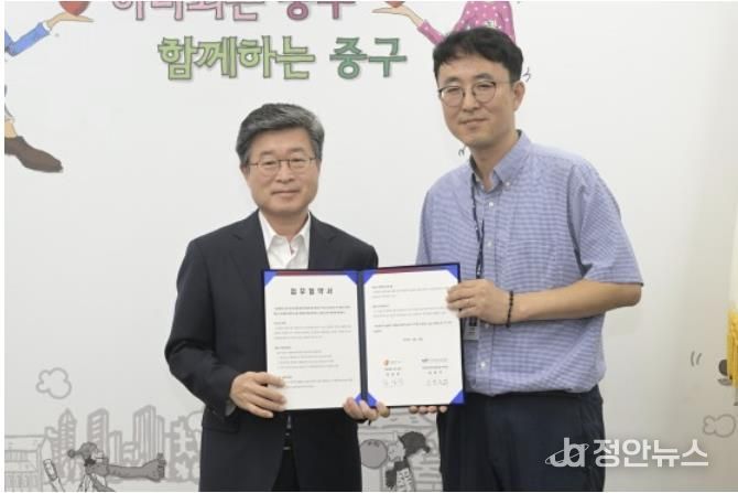 정안뉴스 안정주 기자 | 지난 29일, 서울 중구와 한국공인중개사협회 중구지회가 정비사업 시행지역 내 이주민 지원과 투명한 부동산 중개문화 조성을 위한 업무협약을 체결했다.