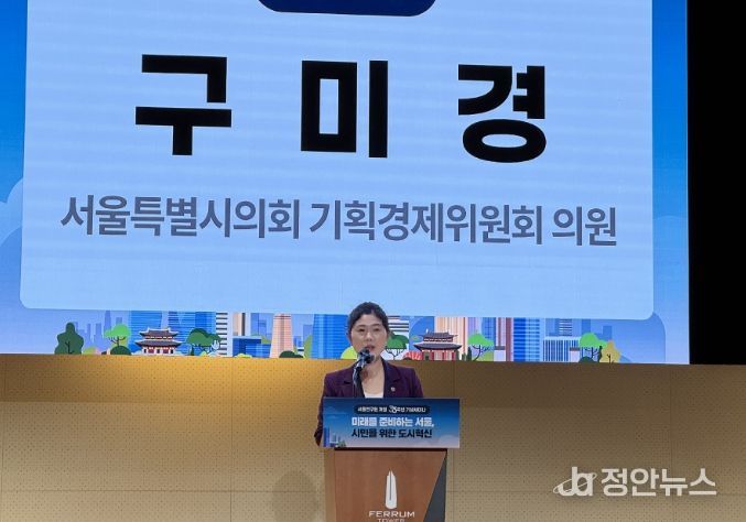 정안뉴스 안정주 기자 | 서울특별시의회 구미경 의원(국민의힘, 성동구 제2선거구)은 10월 1일 페럼타워 페럼홀에서 개최된 서울연구원 개원 33주년 기념세미나에 참석해 축사를 전했다.