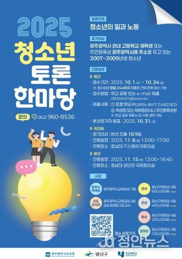정안뉴스 안정주 기자 | 광주 광산구가 청소년들의 다양한 시각에서 생각하고 소통하는 ‘2025 광산 청소년 토론한마당’을 개최한다.