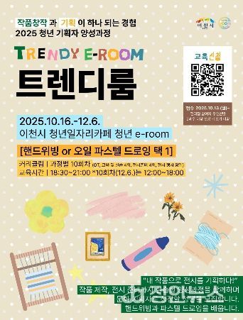 ▲오일파스텔 드로잉 ▲핸드위빙으로 구성하여 예술 작품 제작 및 전시를 준비 및 운영함으로써 문화 기획과 창작 역량을 동시에 강화하는 본 과정은 19세 이상 39세 이하 관내 청년이면 누구나 10월 13일부터 큐알(QR)코드를 통해 신청할 수 있다.