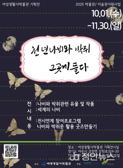 정안뉴스 안정주 기자 | 여주시에서 진행하는 2025년 박물관·미술관 지원사업의 일환으로 여성생활사박물관의 ‘천년 나비와 박쥐 그곳에 들다’ 전시가 10월 1일부터 11월 30일까지 개최된다.