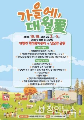 정안뉴스 안정주 기자 | 이천시 대월면 주민자치회는 오는 10월 18일 오후 2시부터 5시까지 대월면 행정복지센터 내 달모람공원에서 주민과 가족이 함께하는 문화축제 ‘가을에, 대월애(愛)’ 행사를 개최한다.