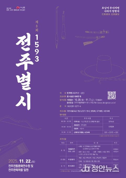 국궁대회 참가 신청 및 한글 글짓기·한시 원고 접수 기간은 오는 20일부터 오는 11월 7일까지이다.