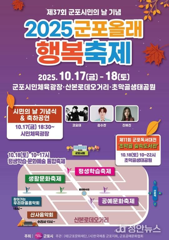 정안뉴스 안정주 기자 | 군포문화재단 군포시평생학습마을은 오는 10월 18일, 산본로데오거리 일대에서 '제12회 군포시 평생학습축제'를 개최한다고 밝혔다. 이번 축제는 관내 평생학습 기관 및 단체·동아리 등이 직접 참여해 시민들과 함께 배우고 즐기는 축제의 장으로 꾸며진다.