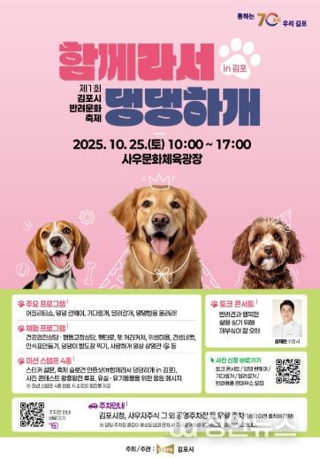 정안뉴스 안정주 기자 | 김포시는 반려동물과 시민이 함께하는 문화의 장인 제1회 김포시 반려문화축제 '함께라서 댕댕하개 in 김포'가 오는 10월 25일 사우문화체육광장(사우동)에서 개최된다고 밝혔다.