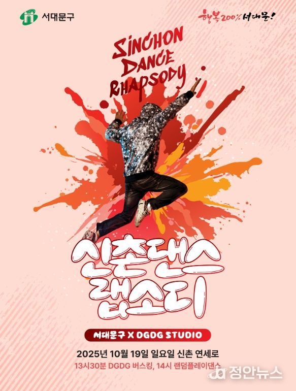 정안뉴스 안정주 기자 | 서대문구가 이달 19일 오후 신촌 연세로 차 없는 거리에서 딩가딩가 스튜디오와 협업해 ‘신촌 랩소디’ 랜덤댄스를 개최한다.