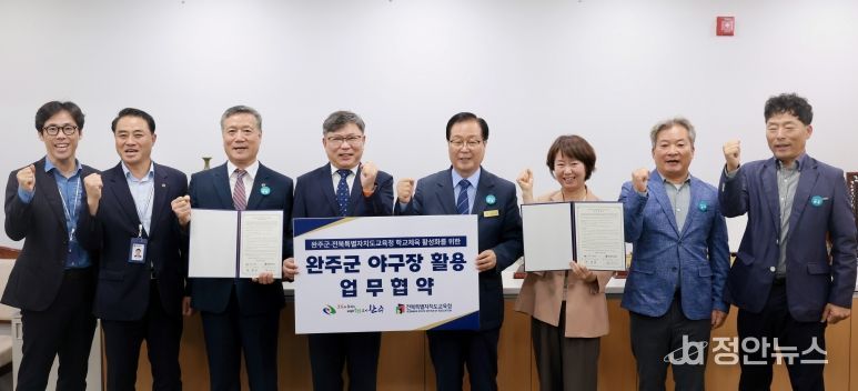 정안뉴스 안정주 기자 | 전북특별자치도교육청과 완주군은 14일 완주군청에서 학생 및 학생선수의 교육활동과 체육진흥을 위한 업무협약을 체결했다.