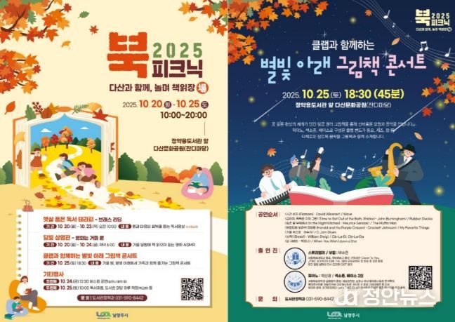 정안뉴스 안정주 기자 | 남양주시는 10월 20일부터 25일까지 6일간 정약용도서관 앞 다산문화공원 잔디마당에서 ‘2025 북피크닉: 다산과 함께, 놀며 책읽장(場)’을 운영한다.