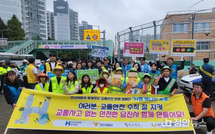 정안뉴스 황도연 기자 | 당진시는 지난 14일 탑동교차로 일원에서 ‘H형 빛나는 도로’ 사업의 일환으로 어린이 교통사고 예방 민관 합동 교통안전 캠페인을 실시했다고 15일 밝혔다.