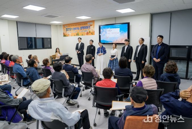 정안뉴스 황은경 기자 | 충북 증평군이 지난 14일 오후 6시, 도안면 송정2리 칠송문화관에서 ‘벨칸토의 찾아가는 성악이야기’ 공연을 개최하며 어르신들과 주민들에게 깊은 감동을 선사했다.
