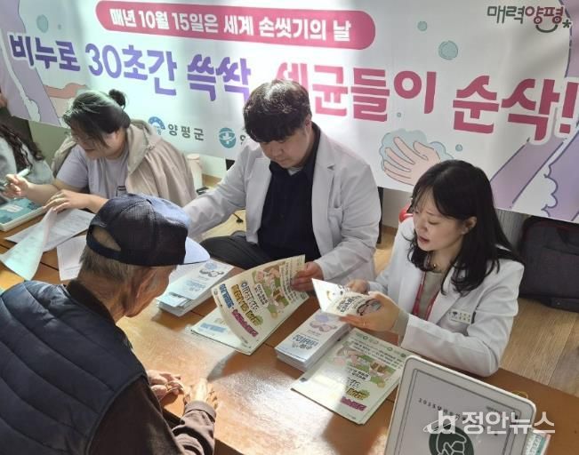 정안뉴스 안정주 기자 | 양평군은 15일 ‘세계 손 씻기의 날’을 기념해, 양동면 쌍학 2리 마을회관에서 ‘달리는 행복나눔이웃들’ 운영과 연계한 유관기관 합동 홍보 캠페인을 실시했다.