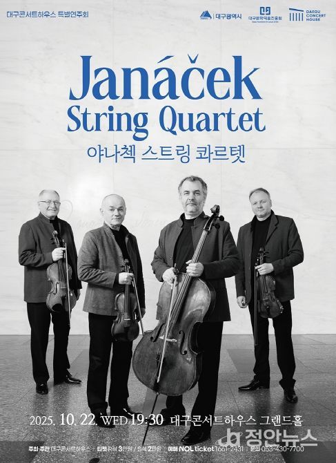 정안뉴스 안정주 기자 | (재)대구문화예술진흥원 대구콘서트하우스는 2025년 한-체코 수교 35주년을 맞아, 체코 정통 실내악의 깊이를 전하는 세계적인 현악4중주단 ‘야나첵 스트링 콰르텟(Janáček String Quartet)’의 내한공연을 오는 10월 22일 오후 7시 30분, 대구콘서트하우스 그랜드홀에서 개최한다.