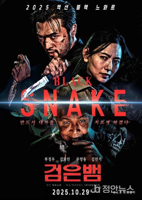 정안뉴스 안정주 기자 | 오는 10월 29일 개봉을 앞둔 하드보일드 액션 느와르 '검은뱀'이 액션 비하인드를 공개하며 관객들의 화제를 모으고 있다.[감독 : 박도환 | 출연 : 부정우, 김화인, 문영동, 김민기, 기주봉 외 | 제작 : 케이스타 | 배급 : ㈜이놀미디어 | 등급 : 청소년관람불가]