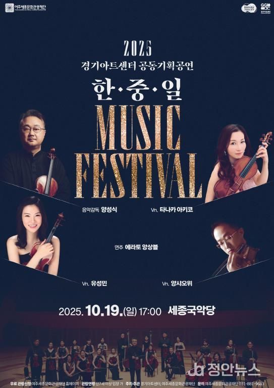 정안뉴스 안정주 기자 | 여주세종문화관광재단이 오는 10월 19일, 경기아트센터와 공동기획으로 ‘한·중·일 뮤직 페스티벌’을 세종국악당에서 선보인다.