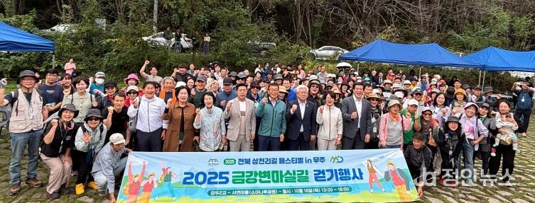 정안뉴스 안정주 기자 | 전북특별자치도와 무주군이 공동 주최한 ‘2025 전북 삼천리길 페스티벌 in 무주 – 아름다운 금강변 마실길 걷기’ 행사가 16일 무주군 부남면 금강변 일원에서 200여 명이 참여한 가운데 성황리에 열렸다.