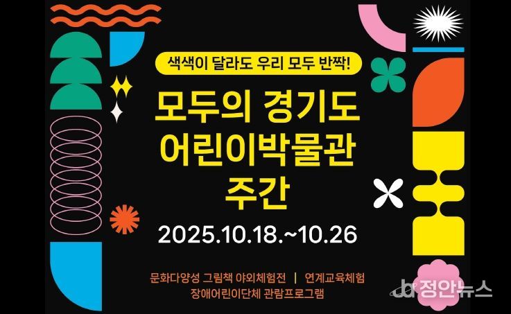 정안뉴스 안정주 기자 | 경기문화재단 경기도어린이박물관(관장 박균수)은 오는 10월 18일부터 10월 26일까지 문화다양성 행사 〈색색이 달라도 우리 모두 반짝! 모두의 경기도어린이박물관 주간〉을 운영한다. 본 행사는 《문화다양성 그림책 야외체험전》, 유아 및 초등 어린이를 위한 연계프로그램, 장애어린이단체 맞춤형으로 개발된 접근성 콘텐츠를 활용한 관람프로그램 시범운영 등 총 3종으로 구성되어 다양한 모습의 관람객을 만나게 된다.