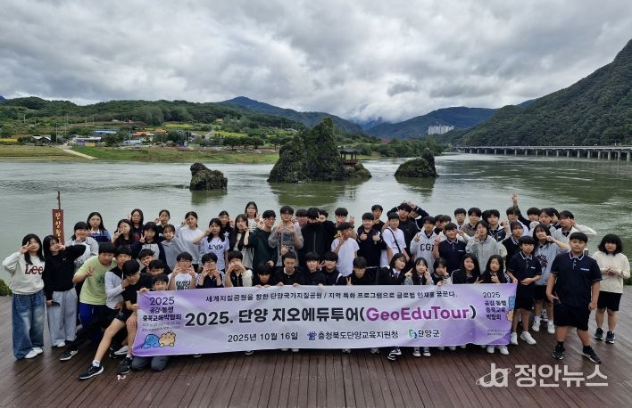 정안뉴스 황은경 기자 | 단양교육지원청은 16일 단성중학교를 비롯한 3개 학교 1학년 학생 84명을 대상으로 단양 유네스코 세계지질공원(도담삼봉 등) 일대에서 ‘단양지오에듀투어’ 지질 탐사 체험학습을 운영했다고 밝혔다.