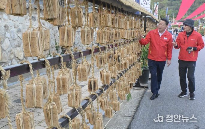이번에 조성된 메주거리에는 총 33개의 거치대에 전통 방식으로 정성껏 엮은 메주 약 4,500개가 걸려 있어, 방문객들의 시선을 사로잡고 있다.