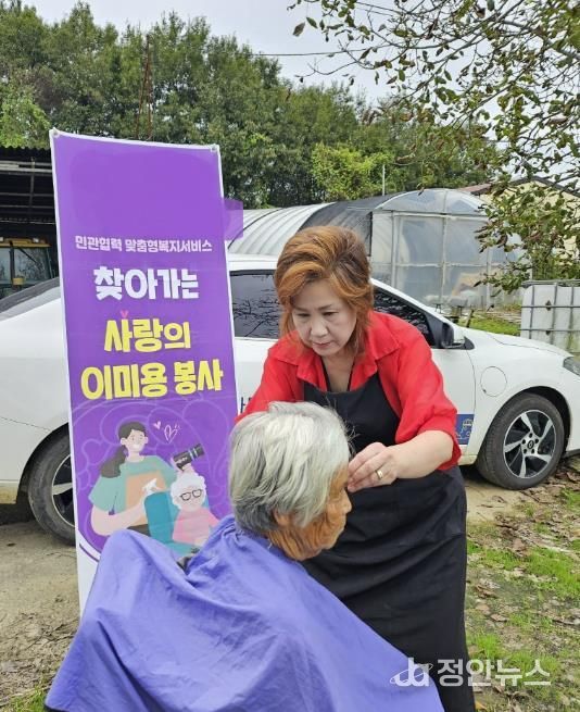정안뉴스 황도연 기자 | 아산시 인주면 행복키움추진단은 17일 거동이 불편한 어르신 가정을 방문해 ‘찾아가는 사랑의 이·미용 봉사’를 실시했다.