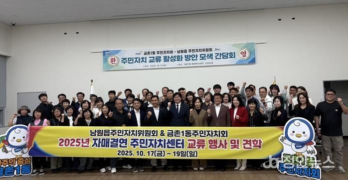 이날 간담회에는 양 지역 주민자치위원과 이은숙 금촌1동장, 김효상 남원부읍장 등 40여 명이 참석해, 주민자치 우수사례를 공유하고 자매결연 관계를 지속적으로 유지하기 위한 방안을 논의했다.