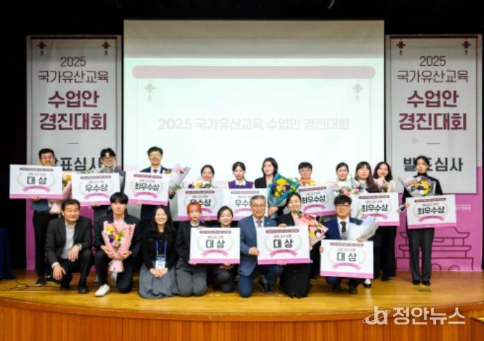정안뉴스 안정주 기자 | 국가유산청은 국가유산진흥원과 함께 학교 현장에서 활용 가능한 우수 국가유산교육 수업안을 발굴·확산하기 위해 ‘2025년 국가유산교육 수업안 경진대회’를 개최하고, 10월 18일 국립고궁박물관 강당(서울 종로구)에서 현장 발표와 최종 심사를 거쳐 총 12건의 수상작에 대해 시상했다.